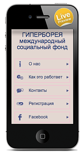 Готов мобильный вариант сайта для Международного социального фонда ГИПЕРБОРЕЯ.